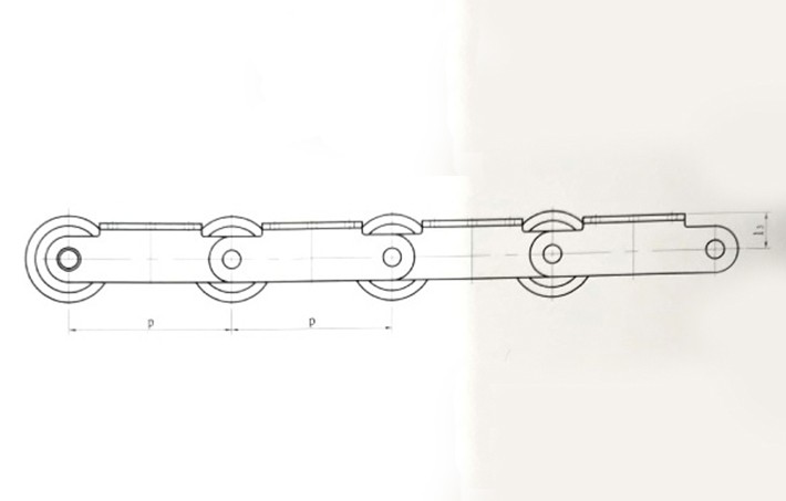 平板輸送機(jī)的鏈條,由帶K型附件的滾子套筒鏈和方管鋼組成,該鏈條在負(fù)載運(yùn)行時(shí),滾子和鏈條導(dǎo)軌之間是滾動(dòng)兼滑動(dòng)的摩擦運(yùn)動(dòng)形式。